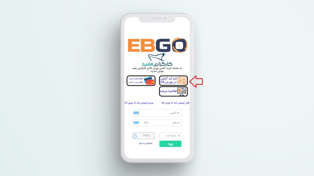 سلام، در سامانه ایبیگو می‌بایست از گزینه «اخذ کد آنلاین در بورس کالا» استفاده کنید.
