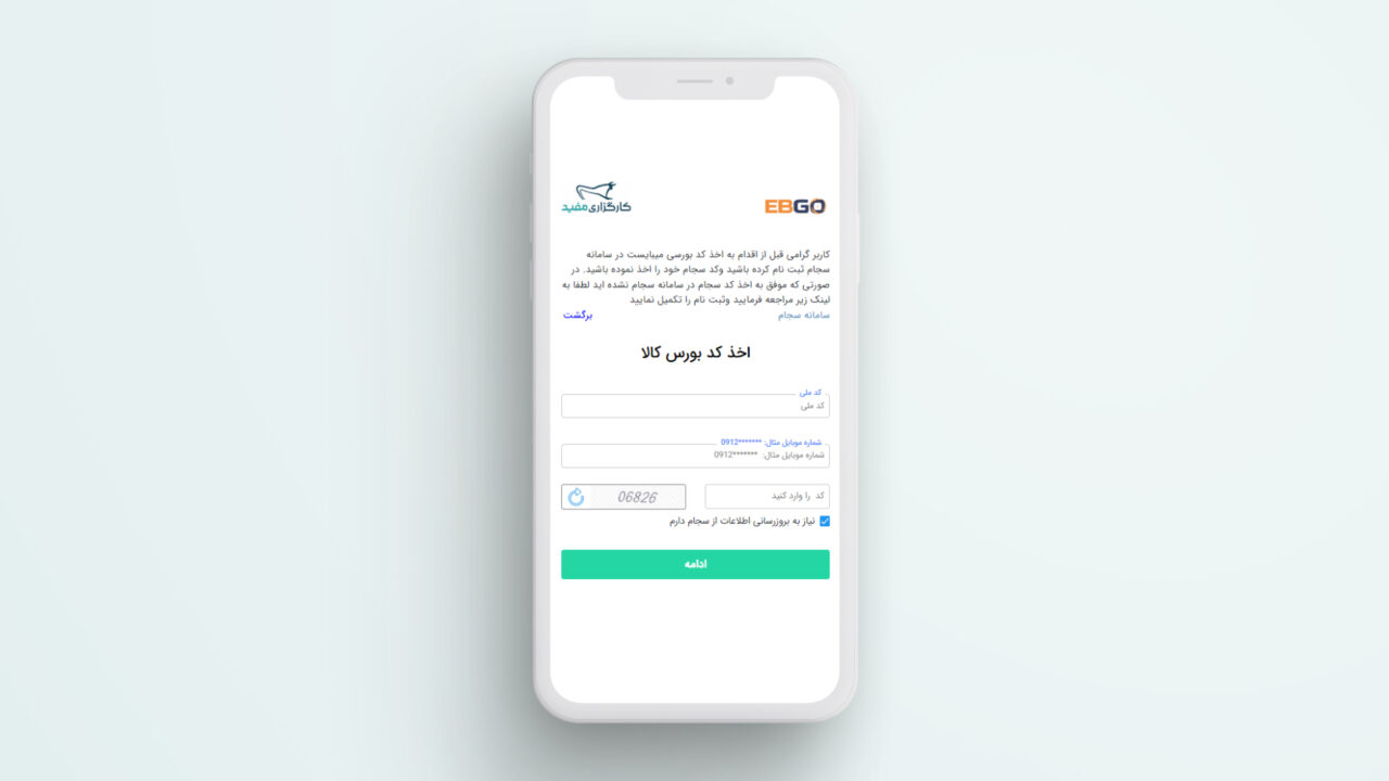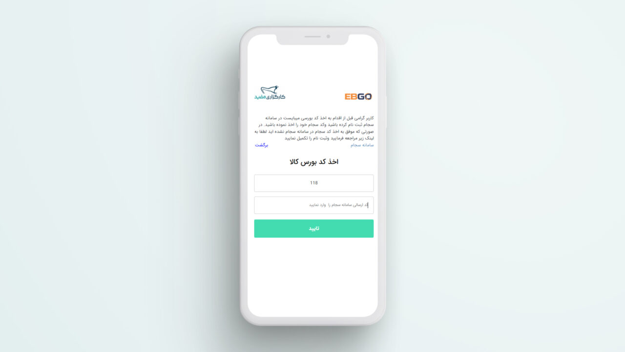 نکته: در صورتی که قبلا نسبت به ثبت‌نام در سامانه ایبیگو اقدام کرده باشید و به عنوان مثال تنها برای کد معاملاتی بازار فیزیکی بورس کالا» اقدام کرده باشید، نیاز است تا با شماره ۸۷۰۰ – ۰۲۱ تماس گرفته و درخواست خود را مبنی بر «دریافت کد بازار مالی (آتی، اختیار معامله و گواهی سپرده کالایی) اعلام کنید.