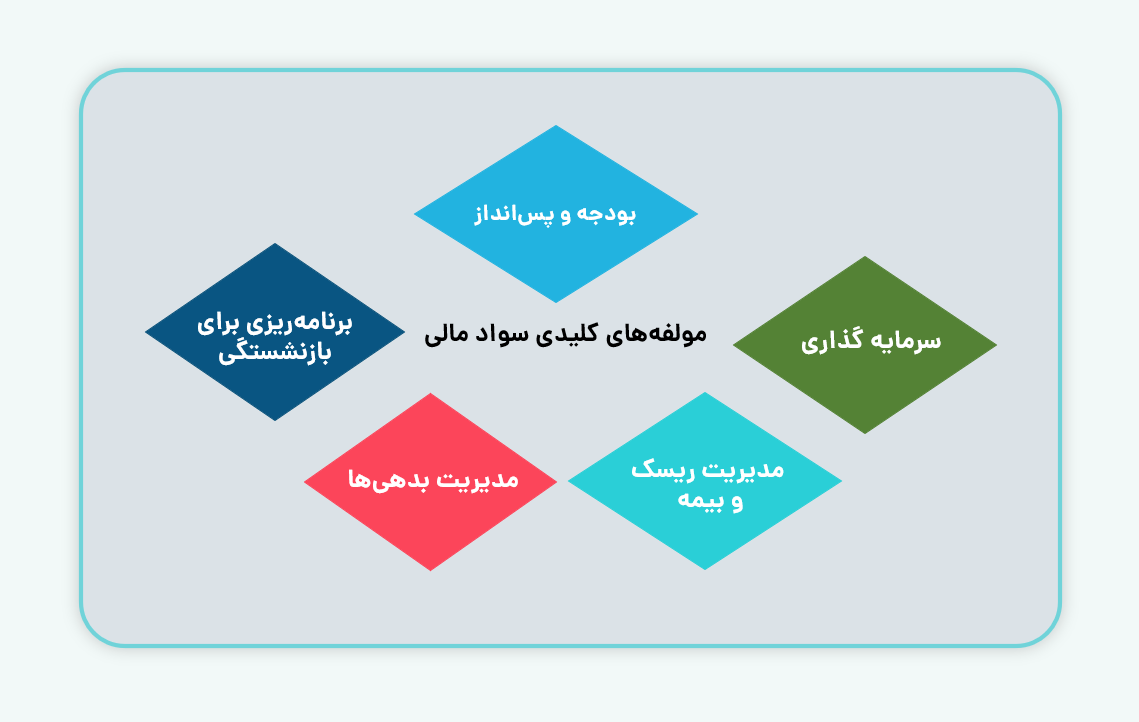 ریسک و بازده: ریسک و بازده از جمله عناصر اساسی هر سرمایه‌گذاری به حساب می‌آیند. ریسک به احتمال وقوع حوادث غیرمنتظره و احتمال از دست دادن سرمایه اشاره دارد، در حالی که بازده به سود و ارزش مورد انتظار از سرمایه‌گذاری اشاره می‌کند. با داشتن سواد مالی، افراد می‌توانند ریسک و بازده سرمایه‌گذاری‌های مختلف را ارزیابی کرده و تصمیماتی اتخاذ کنند که با اهداف و تحمل ریسک آن‌ها همخوانی داشته باشد.