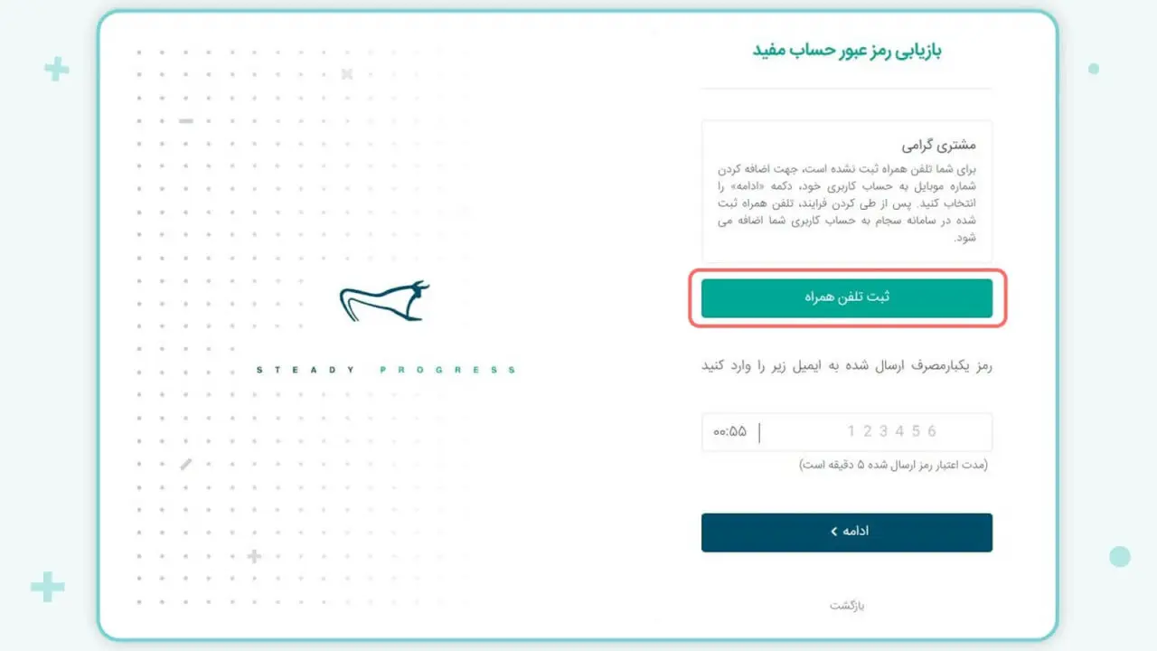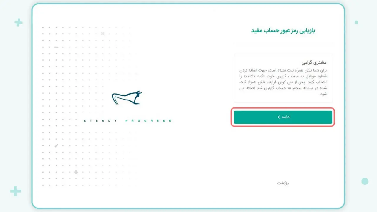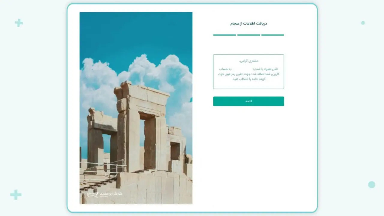 در این صورت کافی است مطابق تصاویر فوق، روی «ادامه» یا «ثبت تلفن همراه» کلیک کنید. در مرحله بعد «دریافت اطلاعات از سجام» را انتخاب کنید.