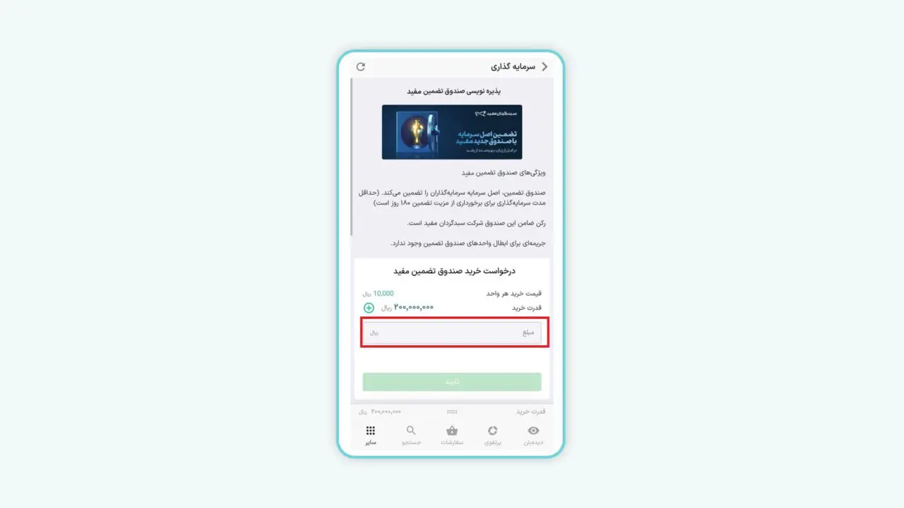 خرید واحدهای صندوق تضمین از طریق مفید اپ مرحله ۱ و ۲