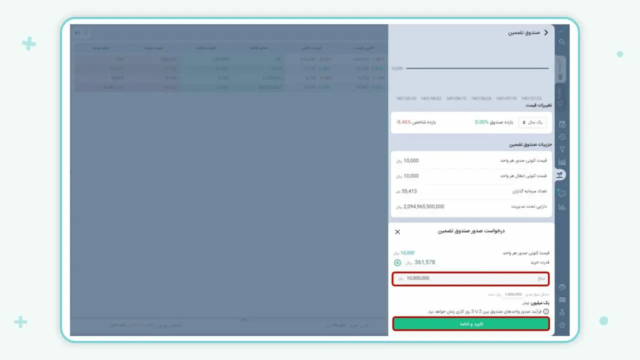 پس از ثبت موفقیت‌آمیز درخواست شما، صدور واحد‌های صندوق بین ۲ تا ۳ روز کاری بعد انجام خواهد شد.