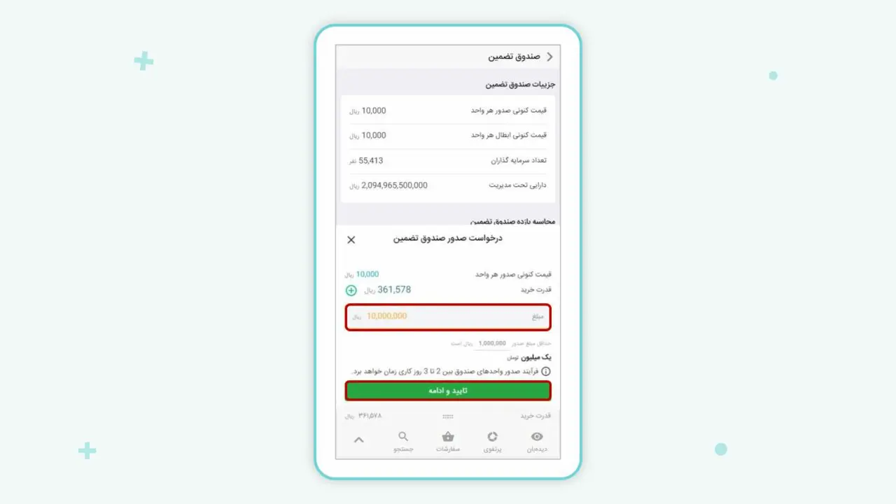 مراحل ثبت سفارش برای خرید واحد‌های صندوق تضمین در مفید اپ
