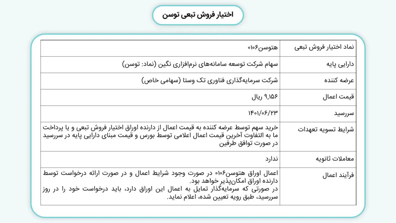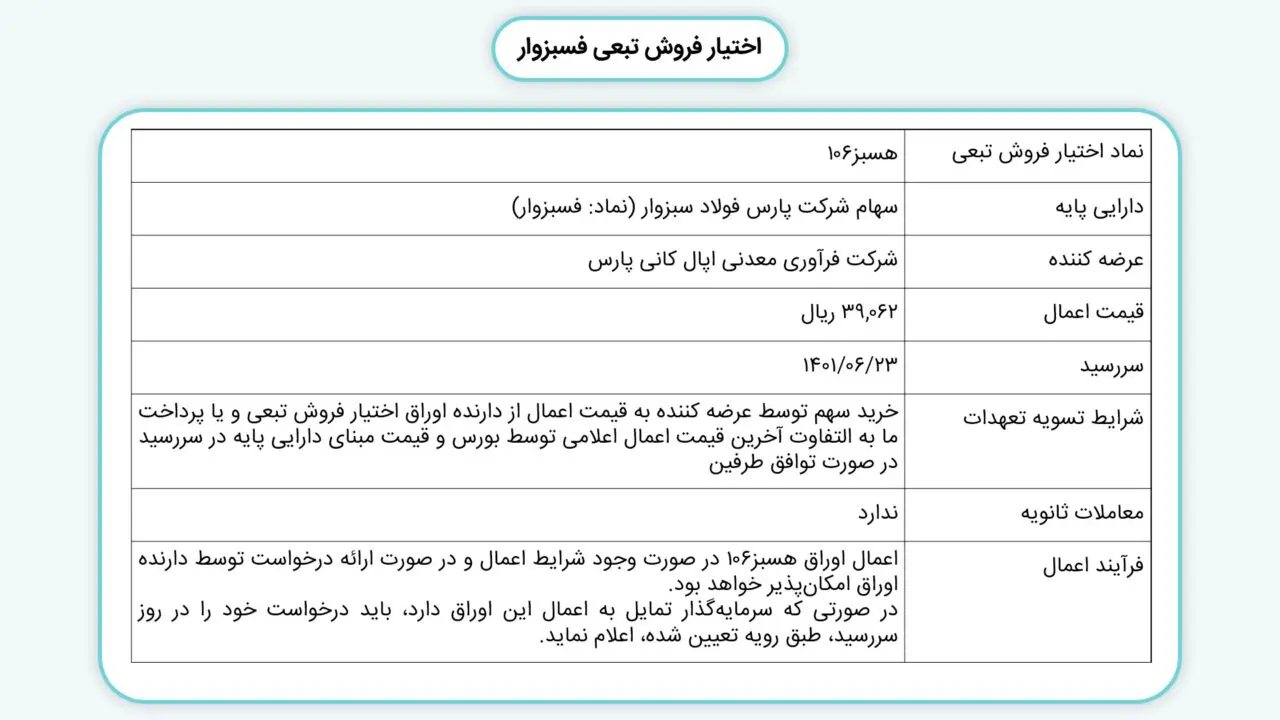| زمان ثبت سفارش | طبق اعلام پیام ناظر بازار در روز عرضه |