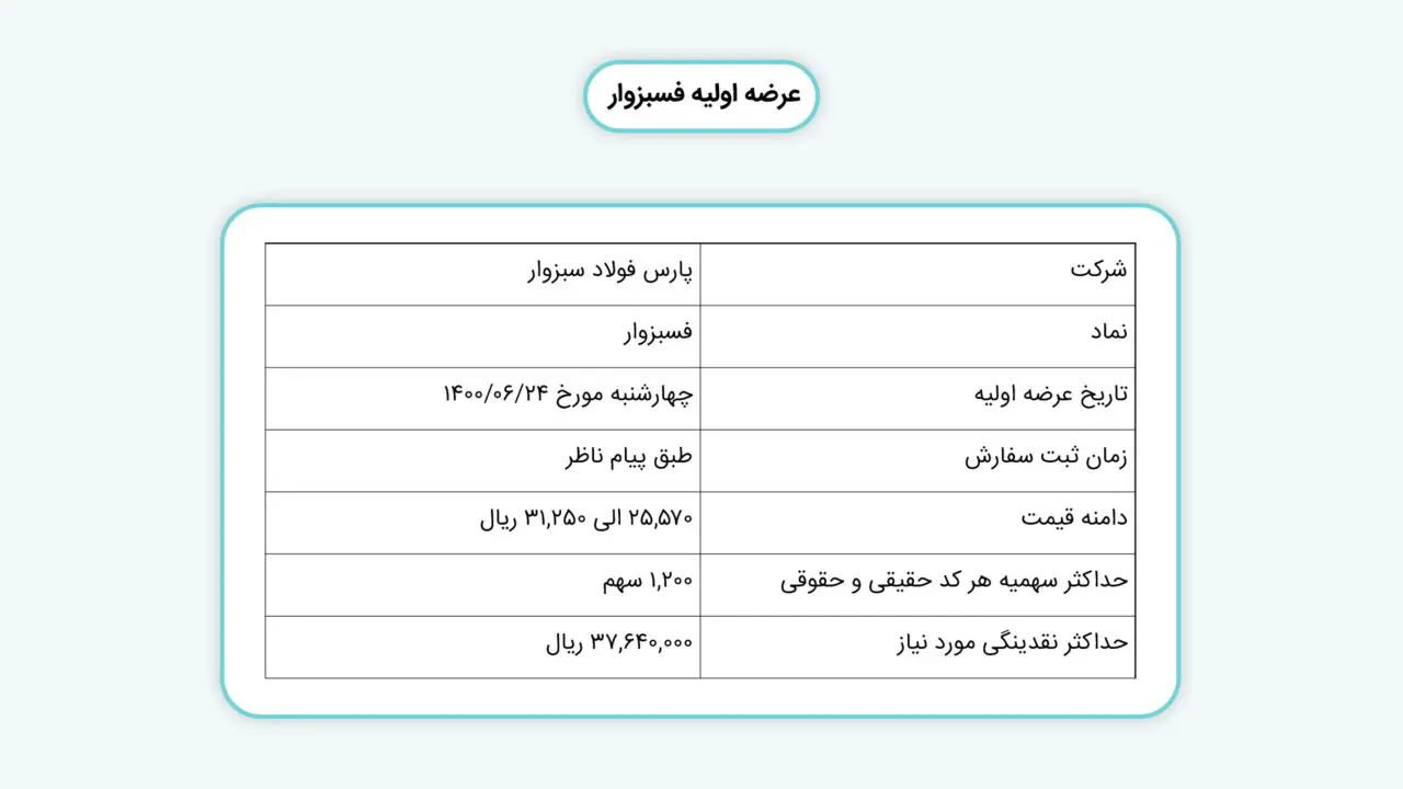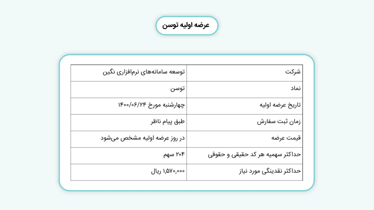 | حداکثر سهمیه هر کد حقیقی و حقوقی | ۱,۲۰۰ سهم |