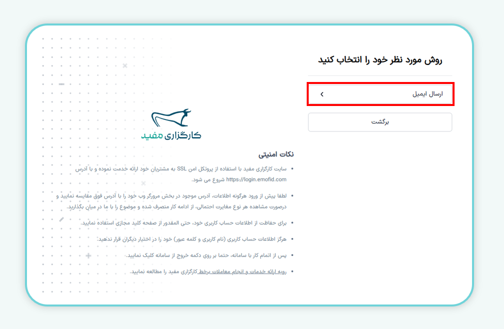 نحوه بازیابی رمز عبور از طریق ایمیل