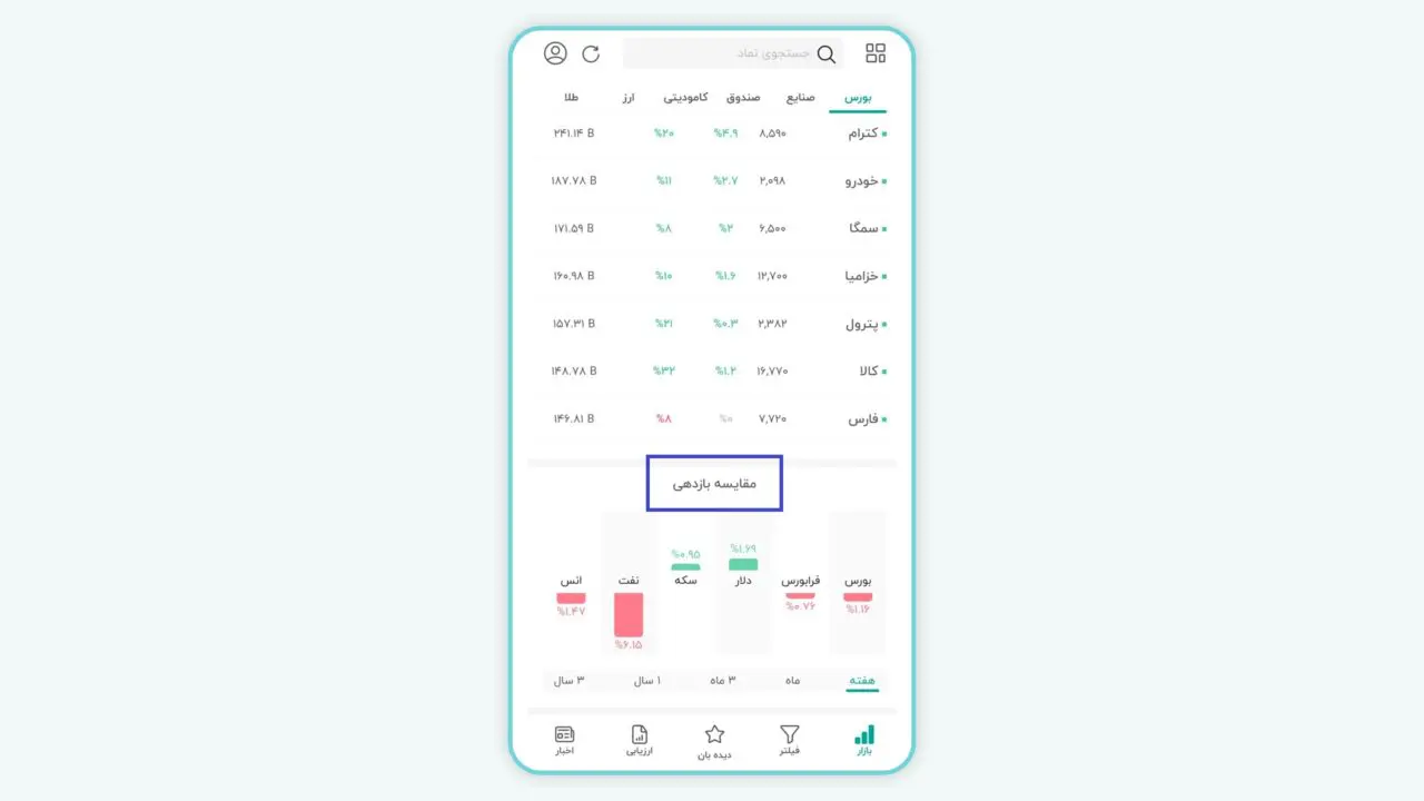 - مشاهده بازدهی انواع بازارها در بازههای زمانی مختلف
