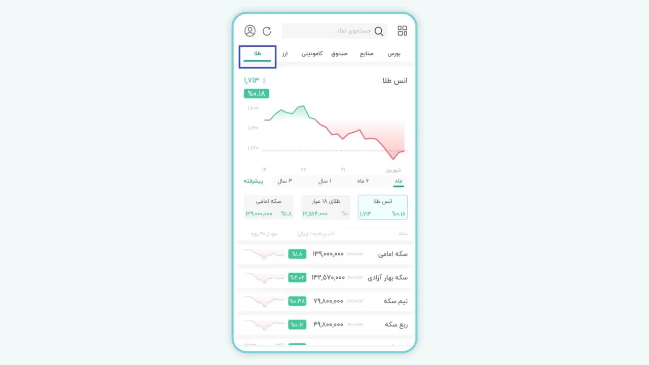پنجره «ارز و طلا» در سامانه بورس ویو موبایل