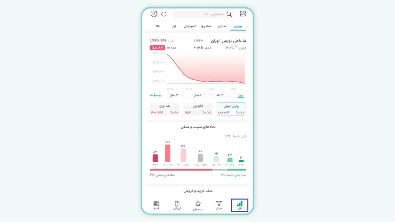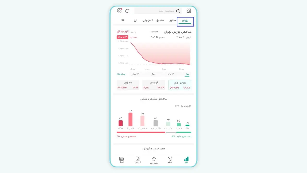 پنجره «بورس» در سامانه بورس ویو موبایل