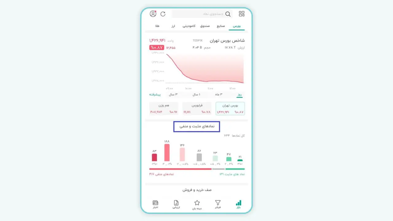 - نمایش تعداد نمادهای مثبت، خنثی یا منفی در بازار