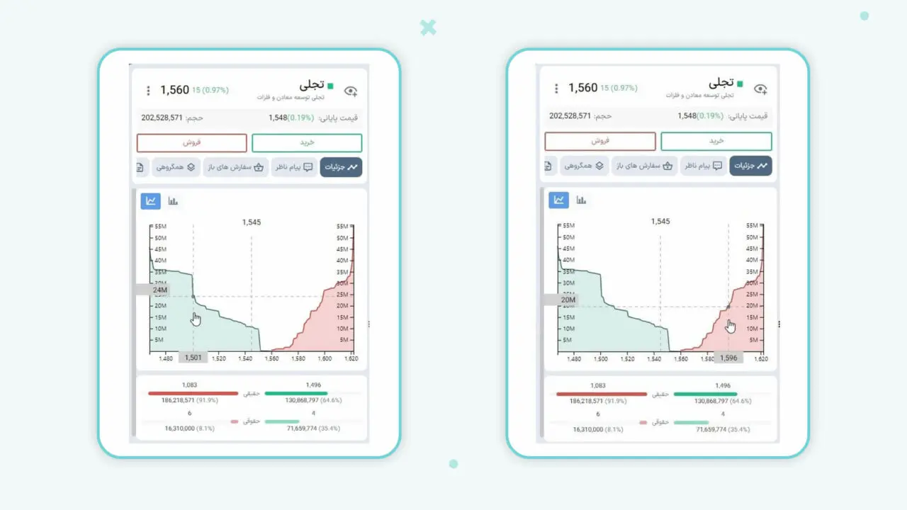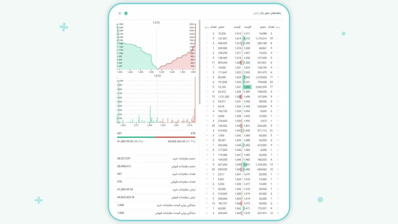 اگرچه این اختلاف ناچیز به نظر میرسد، اما در معاملات بزرگ، میتواند تفاوت معنی داری ایجاد کند. در چنین موقعیتهایی اهمیت این نمودار پررنگتر میشود. شما میتوانید با بررسی سریع «نمودار عمق بازار» و سفارشهای ثبت شده، تحلیل بهتری از نماد داشته باشید.