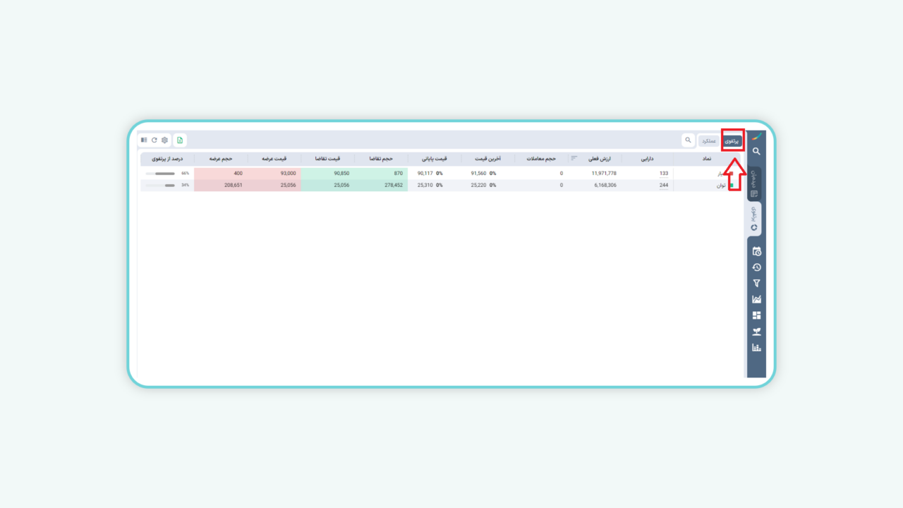 بررسی جزئیات مرتبط با هر نماد در بخش پرتفوی