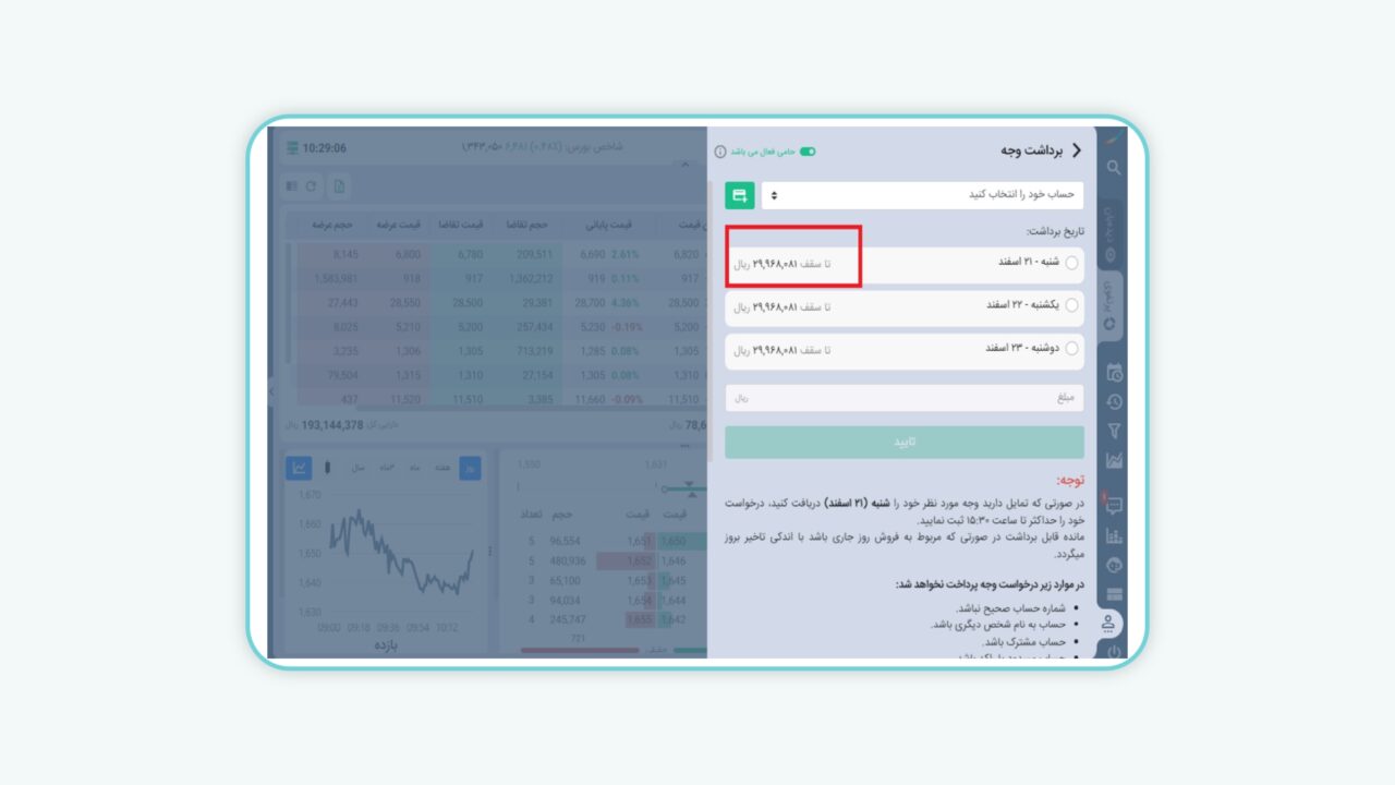 نکته: در صورتی که پرتفوی خودتان را با فروش سهم از حالت تضمین اعتبار خارج کنید، ممکن است شرایط پرداخت وجه برای شما تغییر کرده و وجه مورد نظر شما در روز مشخص شده برای پرداخت واریز نشود.