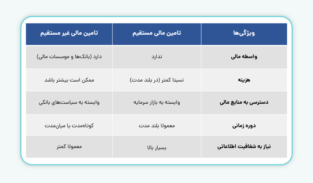 مقایسه تامین مالی مستقیم و غیرمستقیم