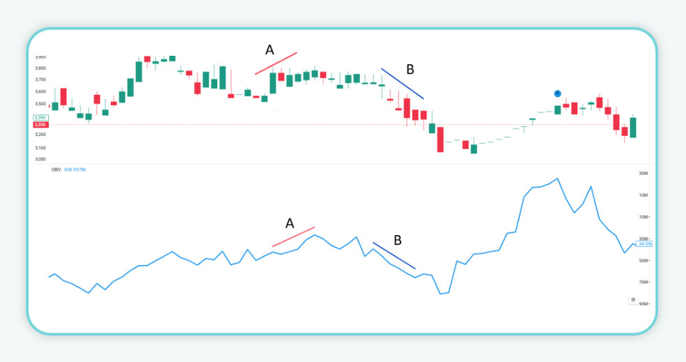 ۲. چگونه واگراییها را با اندیکاتور OBV تشخیص میدهیم؟