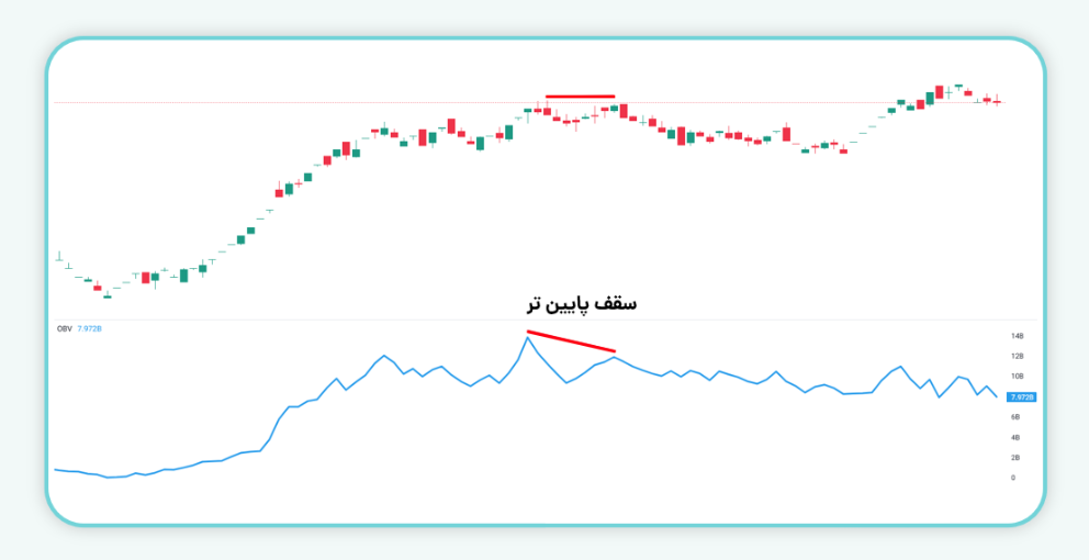 - اگر قیمت افزایش یابد اما OBV کاهش پیدا کند، نشاندهنده ضعف روند صعودی و احتمال برگشت قیمت به سمت پایین است.