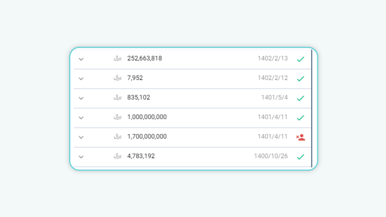 همچنین با کلیک بر روی آیکون «فلش» میتوانید شماره حساب بانکی که برای تقاضای وجه ثبت کردهاید را مشاهده کنید.